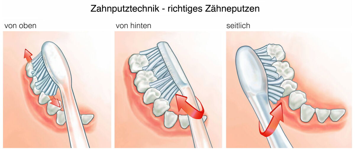 - Drücken Sie mit der Zahnbürste nicht zu fest auf. Die Gefahr, gesunde Zahnsubstanz "wegzubürsten" ist größer, als man annimmt. Auch dem Zahnfleisch kann allzu festes Bürsten schaden